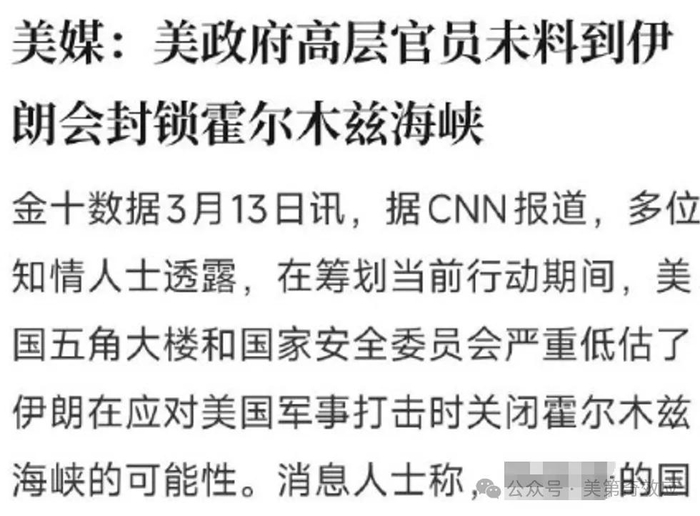 美媒爆出,懂王一开始并没有想到,伊朗真的会封锁霍尔木兹海峡。顾问团队给出的判断相当乐观:三天就能控制局面。于是果断出手。