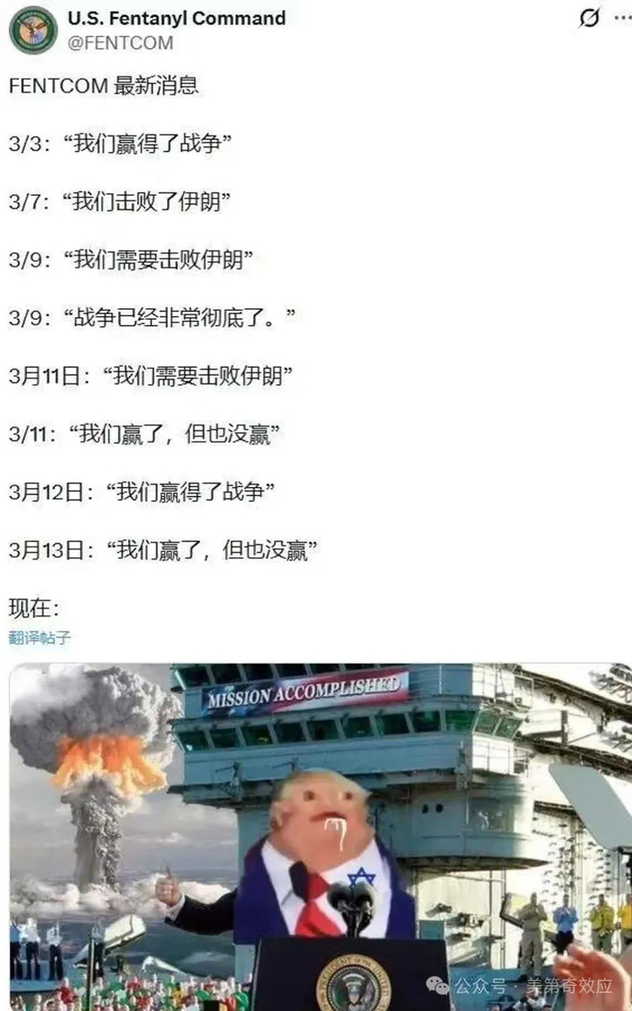 即便鱿鱼掌控下的西方舆论场拥有极强的话语权优势,也很难再掩盖战场上的颓势。懂王天天宣称 “精准摧毁所有目标”“取得全面胜利”,可伊朗一个字都不反驳,只是每天默默的给大哥刷大火箭。