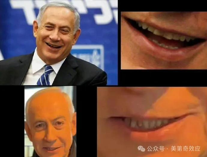 甚至镜头前的人,甚至有点像是特型演员,牙齿和眉眼都跟内塔尼亚胡不同,以至于许多人都在质疑,这是AI换头了?