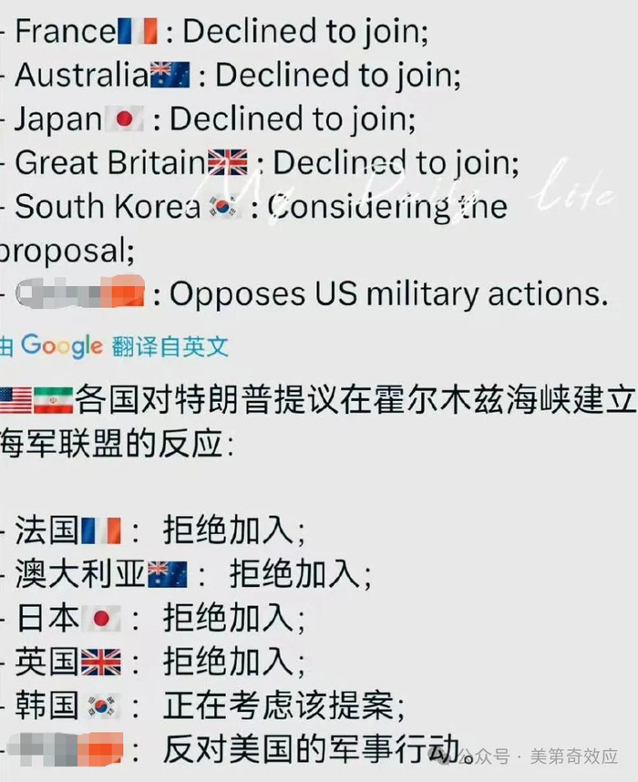 他先施压北约盟友共同介入,威胁不参战就承担后果;又要东方某国也去护航。然而就跟韭菜一样,问了一圈也没借到钱。
